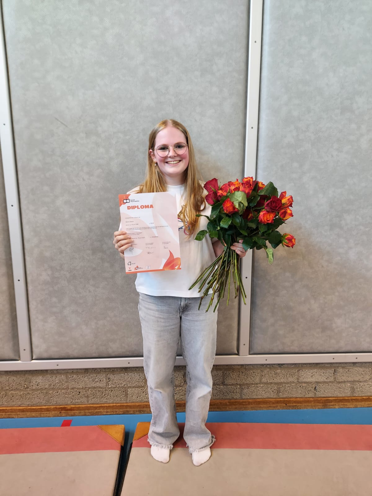 Sterre heeft het diploma trainer-coach gymsport niveau 3 behaald. Ze geeft al lessen, onder andere in Werkhoven, en heeft er nu dus een prachtig diploma bij. Van harte gefeliciteerd en heel veel plezier bij alle lessen die je gaat geven!
